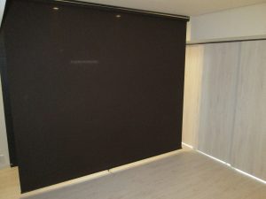 間仕切ドアを大きくし、キッチン前に特大のロールスクリーンを設置、