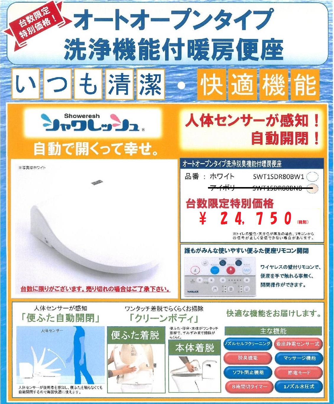 当キャンペーンでリフォームできる一体型便器はINAXベーシア シャワートイレ(ウォシュレット、リモコン付き)【DT-B281U】です。ベーシックなシャワートイレで、きっとご満足いただけることと思います。